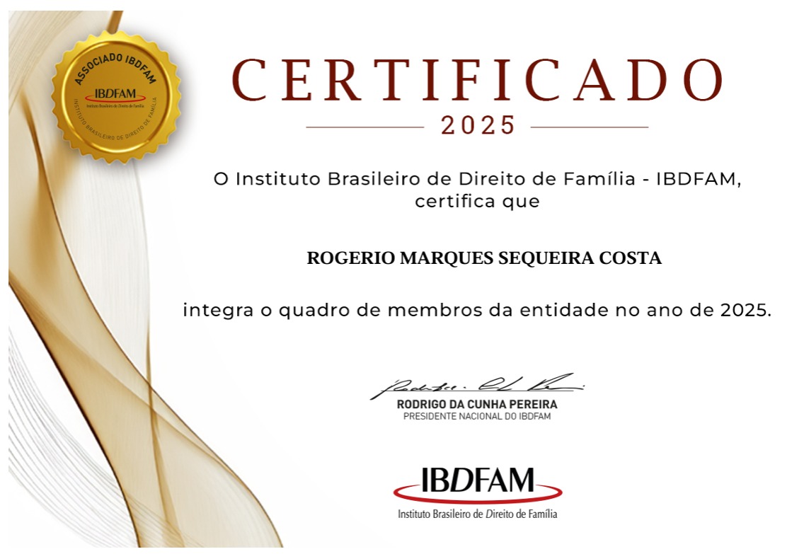 O notário Rogério Marques Sequeira Costa, titular do Cartório do 1º Ofício de Itaocara/RJ, agora integra oficialmente o quadro de membros associados do Instituto Brasileiro de Direito de Família – IBDFAM.